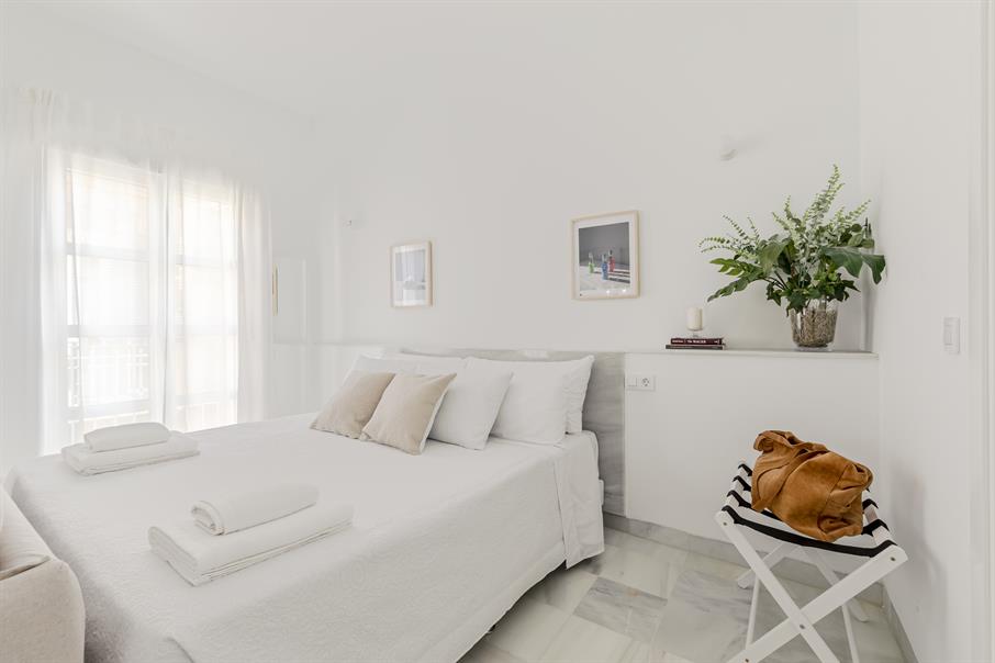 1 Dormitorio: 1 cama doble King Size (180 x 200 cm).   Sofá doble en el salón (NO es sofá cama).