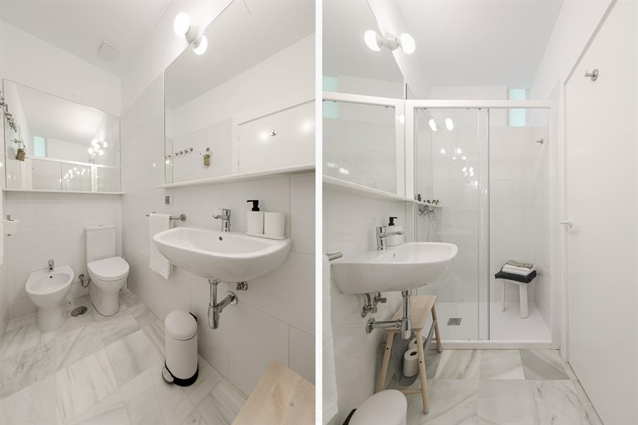 Está  situado  en la segunda de la casa, con ascensor. También incluye una terraza común amueblada con tumbonas y ducha exterior de aproximadamente 20 m2 en la azotea del edificio, con vistas a la Catedral.
