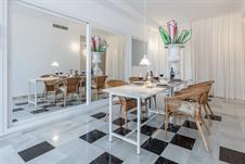 Gran salón con zona de estar y terraza privada, zona de comedor y cocina totalmente equipada.